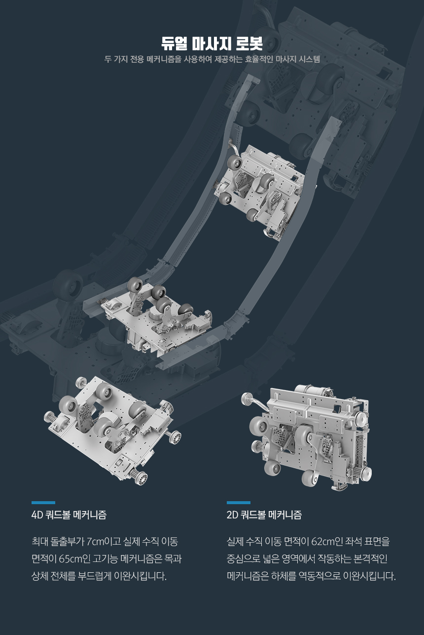 2️⃣이중 마사지 로봇 시스템은 정교한 두 대의 로봇을 동시에 작동시켜 심층적이고 효과적인 마사지를 제공합니다.