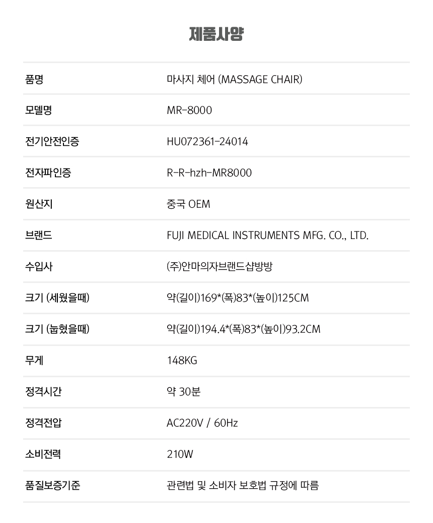 후지의료기 안마의자 MR8000 최신형 듀얼엔진 4D 메커니즘에 대한 자세한 정보 및 구매 문의는 아래 링크를 참조하십시오.