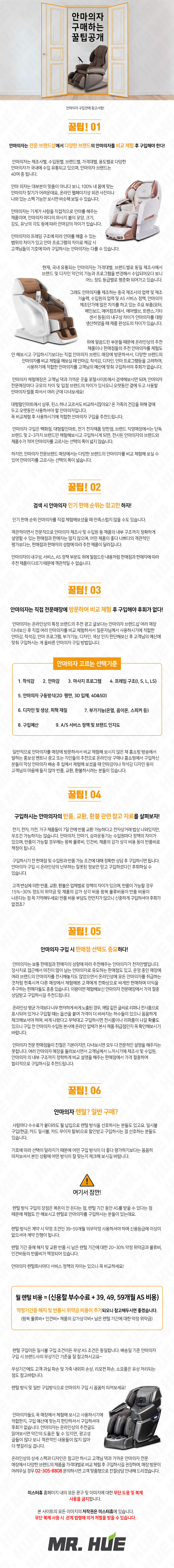 ※ 유지 보수 및 A/S 정책: 고가의 안마의자 구매 시, A/S 정책의 중요성을 간과해서는 안 됩니다. 보증기간, 서비스센터 접근성, 출장 A/S 가능 여부 및 부품 교체 비용 등을 면밀히 확인해야 합니다.
